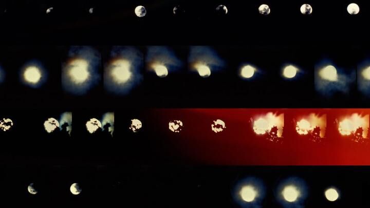 Lunar Almanac traces the observational points of the lunar cycle in a series of visual notations. Using single-frame and long-exposure photography, the unaltered, in-camera editing accumulates over 4000 layered field views of half-moons, new moons, and full moons. These lunar inscriptions flit across the screen with a frenetic energy, illuminating nocturnal reveries that pull at the tides as much as our dreams.