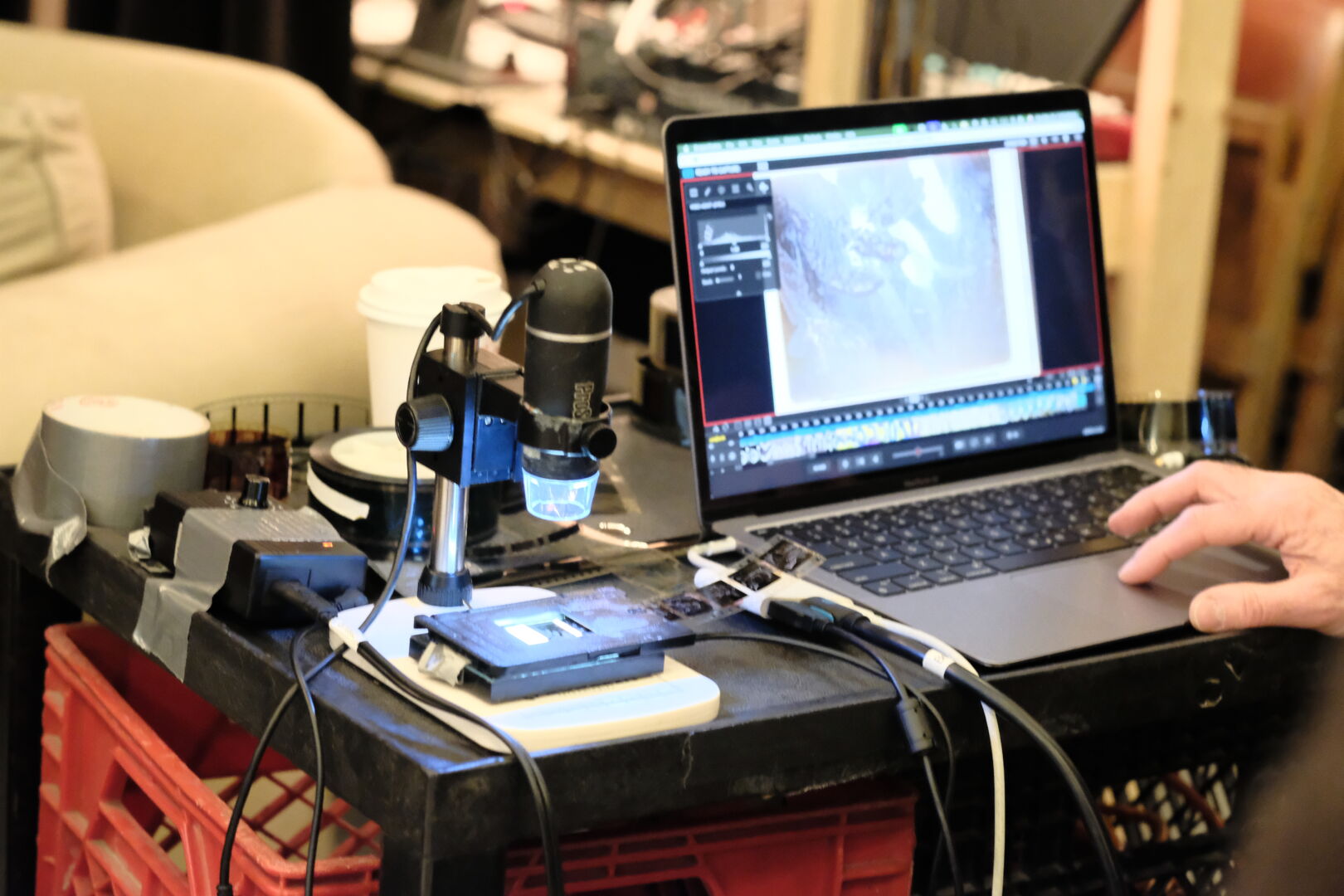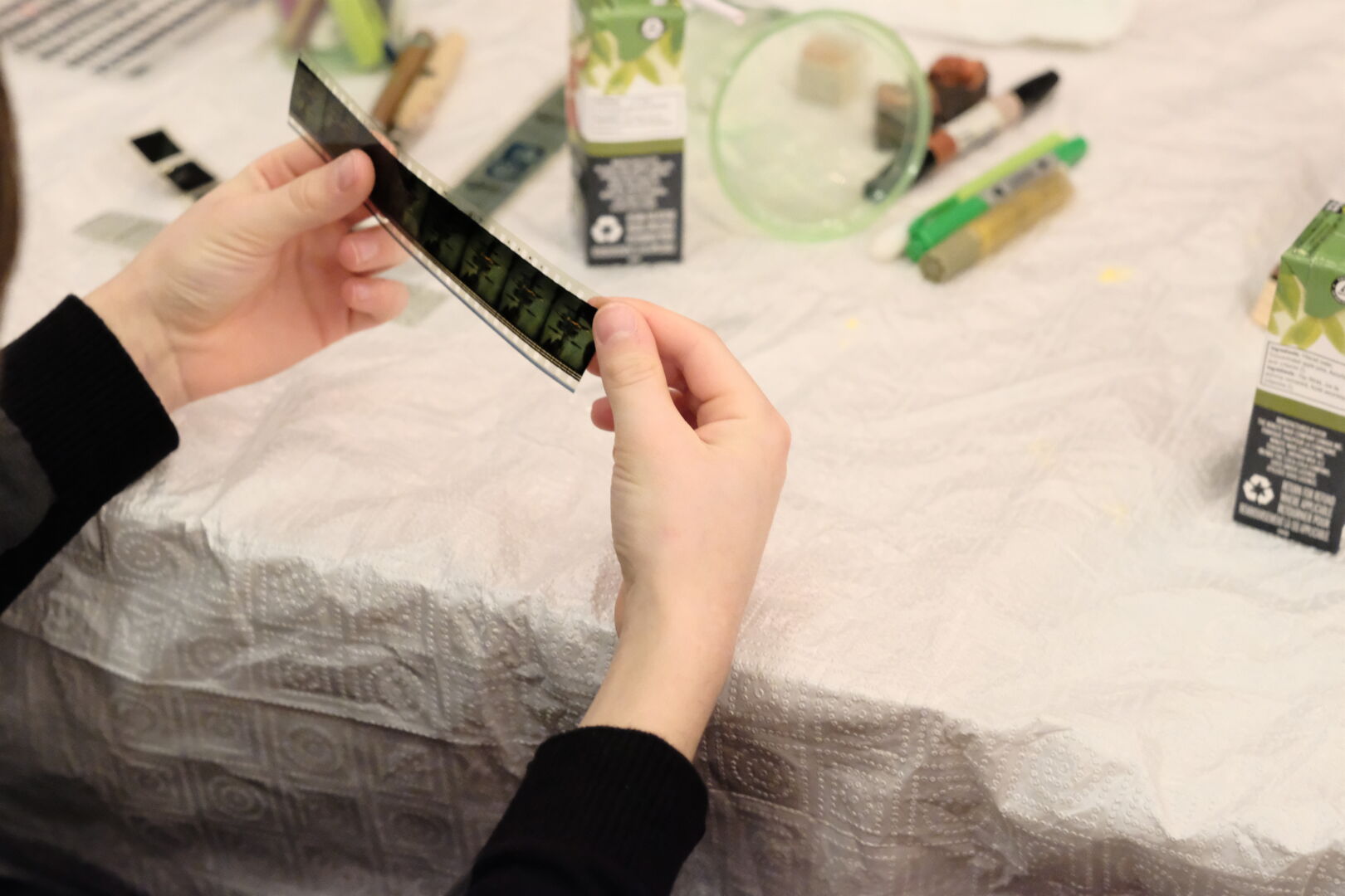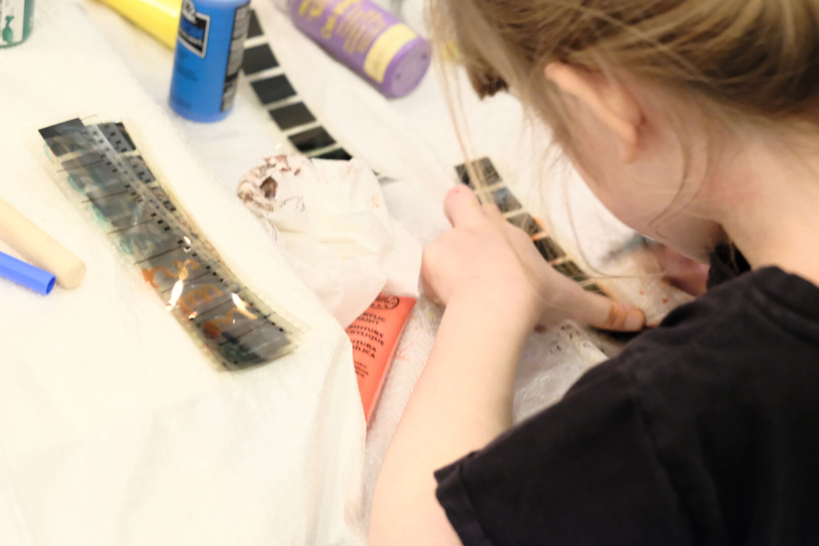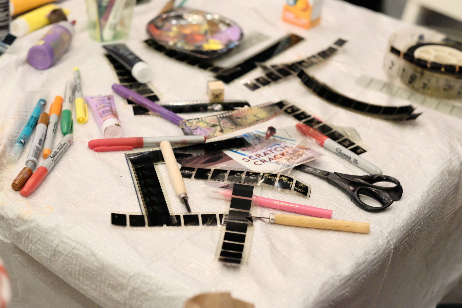 La projection sera suivie d’un atelier de film artisanal en 35 mm qui permettra aux participants d’explorer la manière dont les images abstraites se transforment selon les genres musicaux. Nous utiliserons des peintures, des encres et des outils de grattage pour créer le mouvement, puis nous y ajouterons une musique préenregistrée afin de compléter le projet. Les participants seront également encouragés à créer leurs propres sons et à les intégrer à leur réalisation.