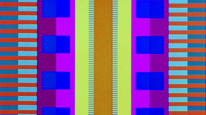 Film expérimental abstrait où des motifs graphiques dessinés directement sur la pellicule génèrent simultanément l’image et le son dans une exploration visuelle et musicale de la synchronisation.